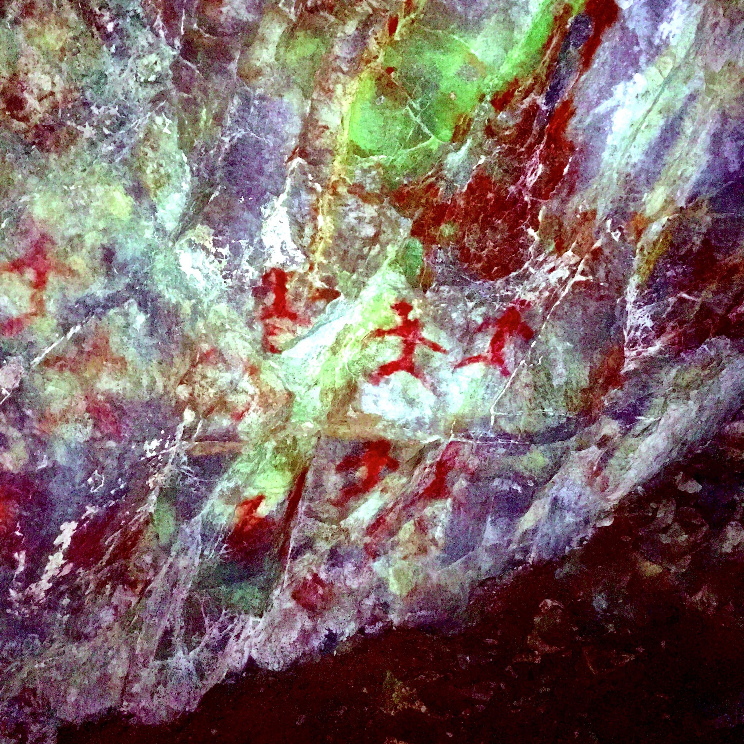«Hvis vi husker at den vanligste formen for bergkunst er den åpne hånden omkranset av oker, så er det å huske den første handlingen av å berøre stein, å åpne hånd, spytt, leppe og pust – i møte med spørsmålet om å berøre jorden og dens geologiske perspektiv»